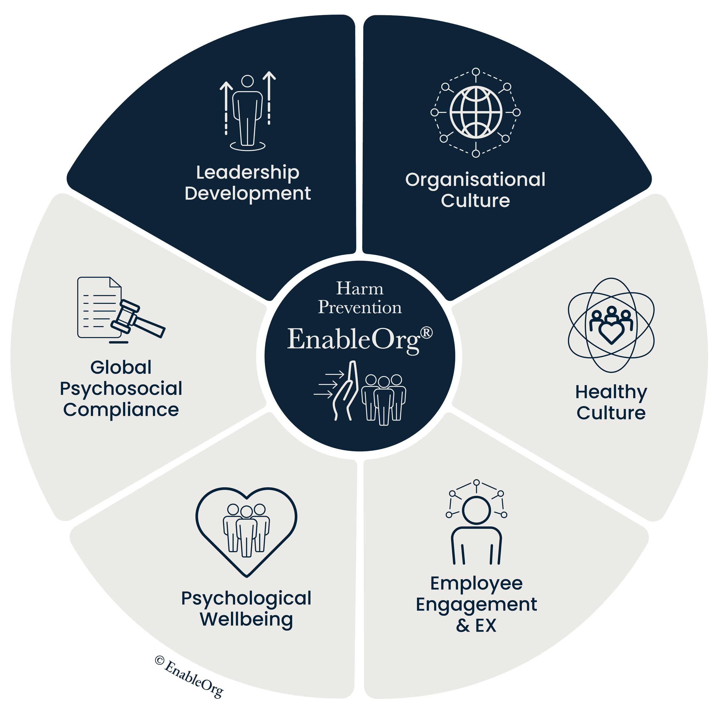EnableOrg® connects WHS, HR, PC, EX and line leadership around a shared, preventive approach to psychosocial risk, wellbeing, stress, engagement and culture so everyone is working from the same data, language and harm prevention framework.